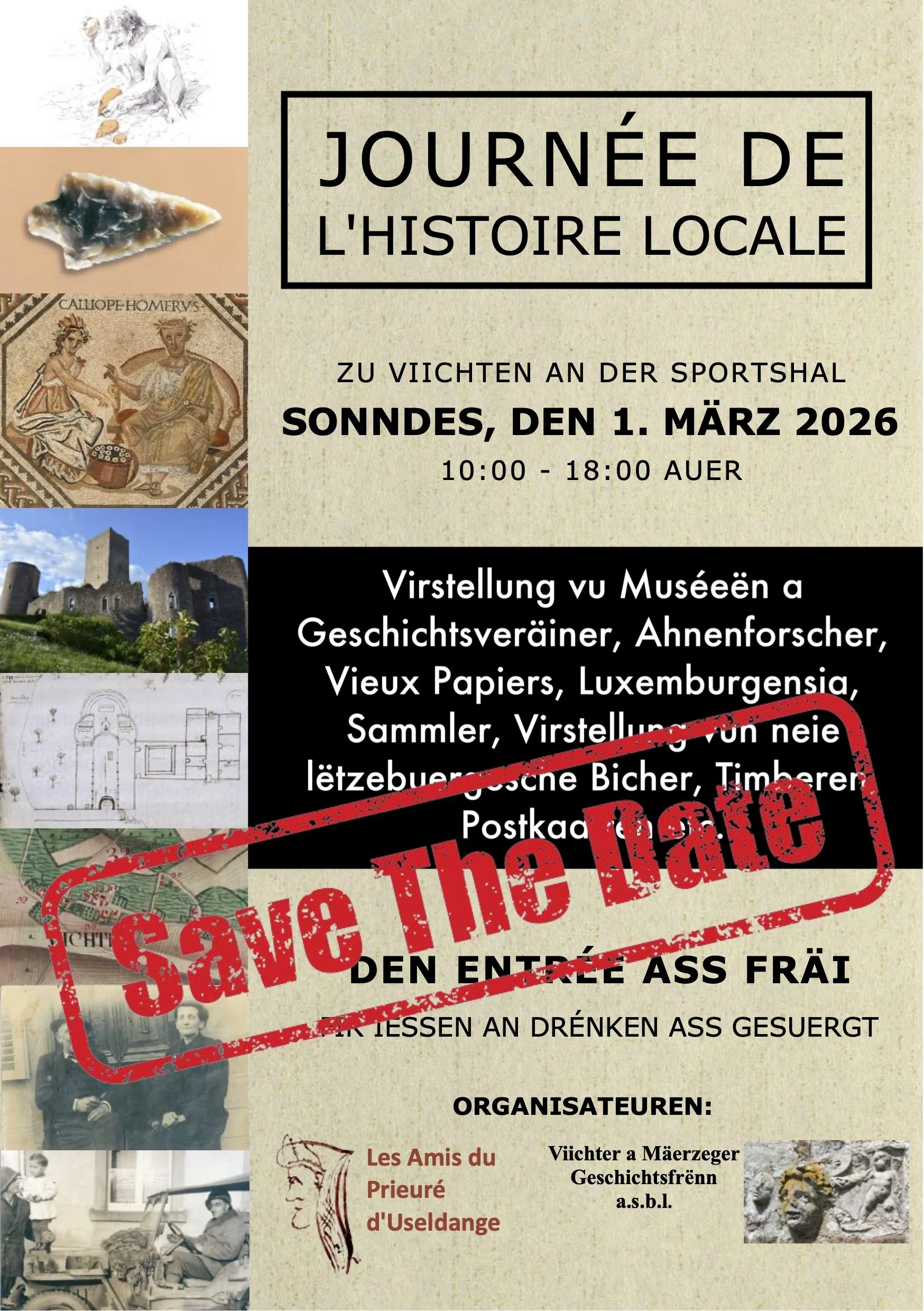 Sonndeg, den 1. Mäerz 2026 fënnt zu Viichten nees d’Journée d’Histoire Locale statt. D’LDF ass do mat engem Stand vertrueden. Kommt an stellt eis är Froen.